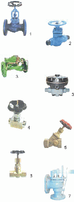 Stopfbuchsventile (1), Faltenbalgventile, Kolbenventile (2), Membranventile (3), Nadelventile (4), Schrägsitzventile (5), Hochdruckkleinventile (6), Ventile mit Weichdichtung,