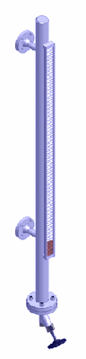Bei einem Magnetklappenanzeiger stellt der in einem Parallelgefäß geführte Schwimmer über einen eingebauten Magneten eine Reihe beweglicher Magnetklappen, die sich bei Schwimmerdurchgang um 180° drehen und dem Betrachter mit deutlich andersfarbiger Rückseite den geänderten Füllstand anzeigen. Wir liefern Magnetklappenanzeiger für Behälter in allen Industrieanlagen, für Gasspeicher, Chemieanlagen, Raffinerien und Kälteanlagen nach DIN 3158. Sie sind auch als Regler oder Begrenzer für Dampfkessel bis PN 63 einsetzbar. Werkstoffe nach DIN und ASTM, C-Stahl oder Niro. Die Geräte lassen sich auch mit Reed-Ketten zur Weiterverarbeitung der Meßwerte und mit Grenzkontakten ausrüsten.